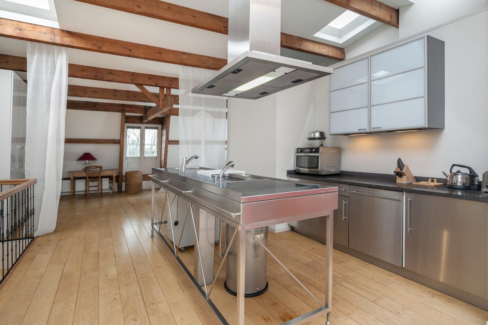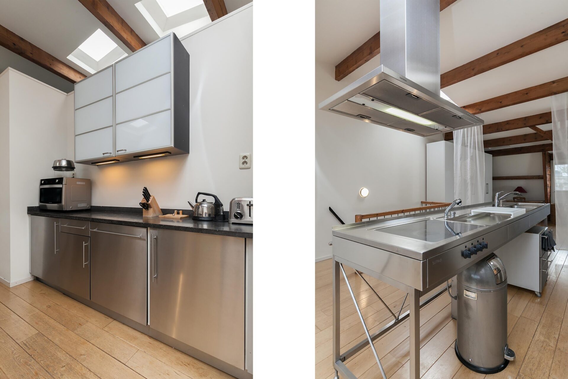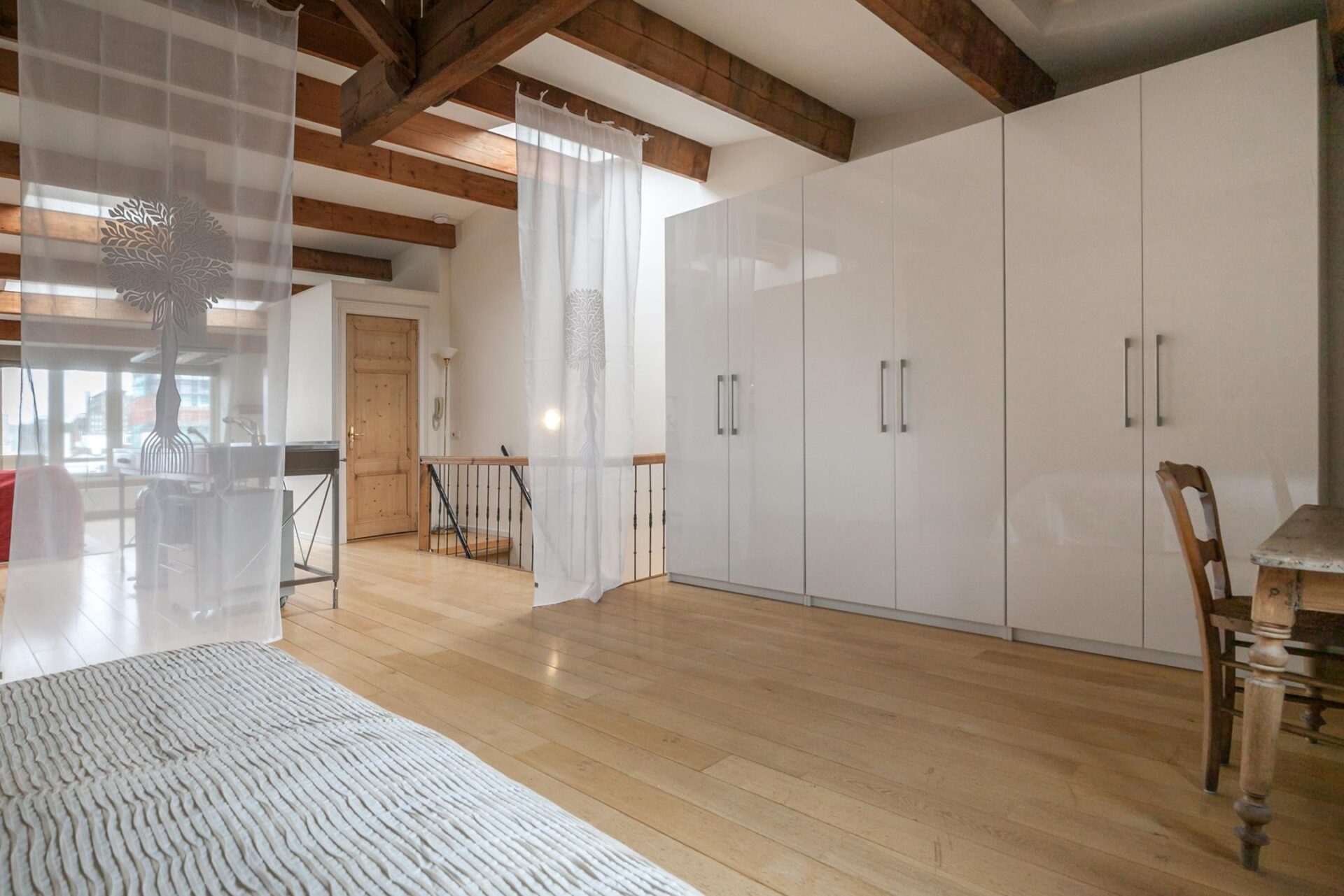 The loft-apartment has an open lay out and due to its many skylights it’s very bright. There’s a beautiful wooden floor and the wooden beams on the ceiling give the apartment lots of character. It’s fully furnished and has all utilities and internet already activated.