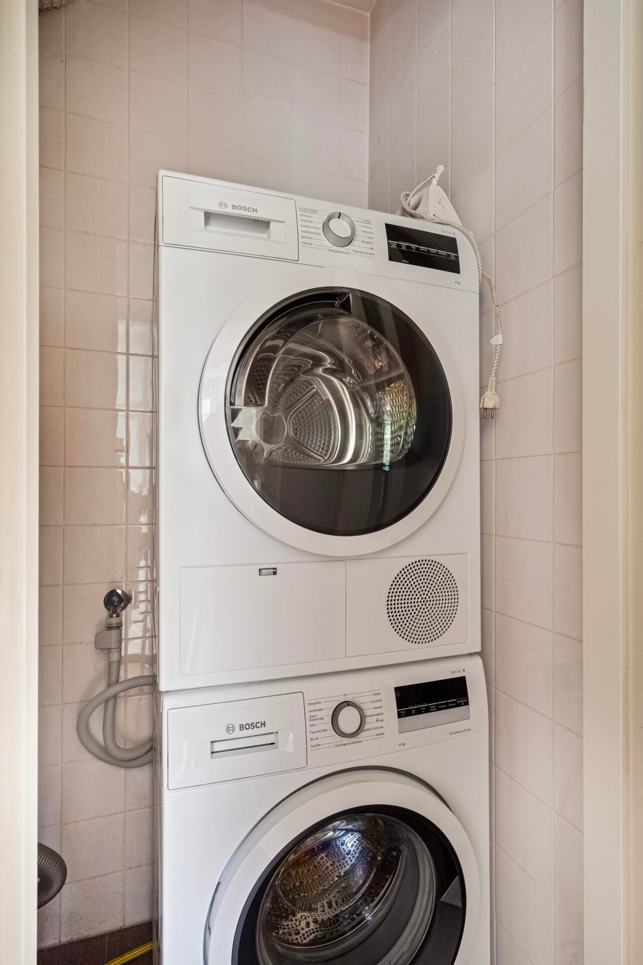 In the hallway there’s a small storage which has a washing machine, and separate dryer installed.